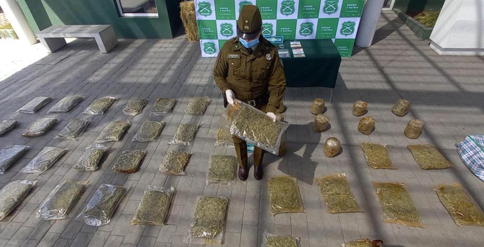 Al respecto el oficial explicó que el pasado 6 de septiembre en una fiscalización vehicular en la ruta 5 norte realizada por Carabineros del Retén Alemania de la 1ª Comisaría de Taltal, se sorprenden el traslado de 48 kilos 498 gramos de marihuana.