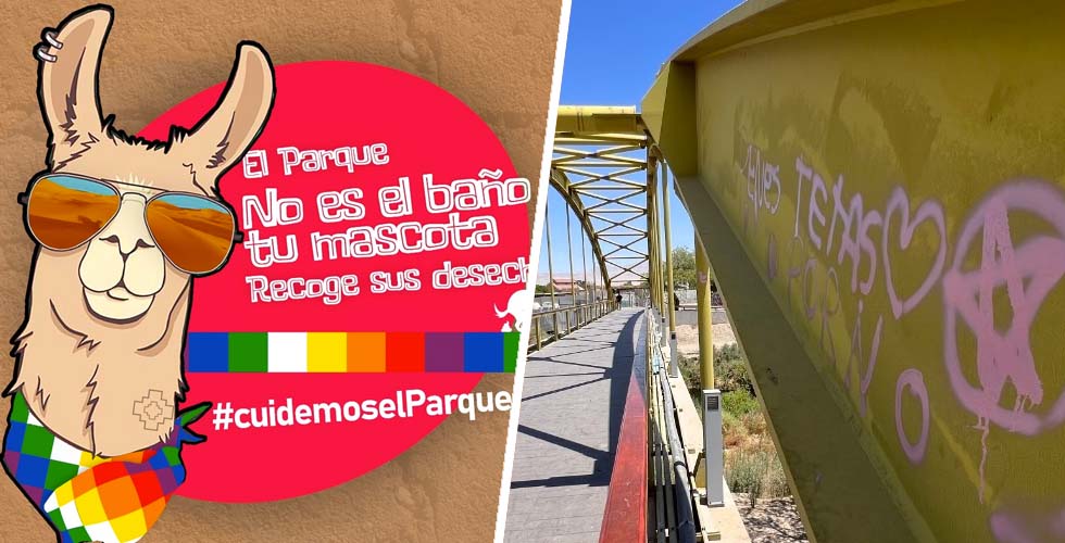 Es sin duda alguna, el lugar más reconocido de la ciudad como punto de encuentro familiar, y es que los años de historia que tiene el Parque El Loa, lo ha convertido en un emblemático lugar dentro de la comuna; Sin embargo, pese a las distintas mejoras del espacio, y a los constantes cuidados que personal de aseo realiza, los daños en el lugar suman y siguen. Por estos días, de manera especial, en el reciente inaugurado Borde Río, donde no solo botellas de alcohol se encuentran, sino también importantes destrozos y rayados ensucian hoy estos grandes avances de la ciudad.